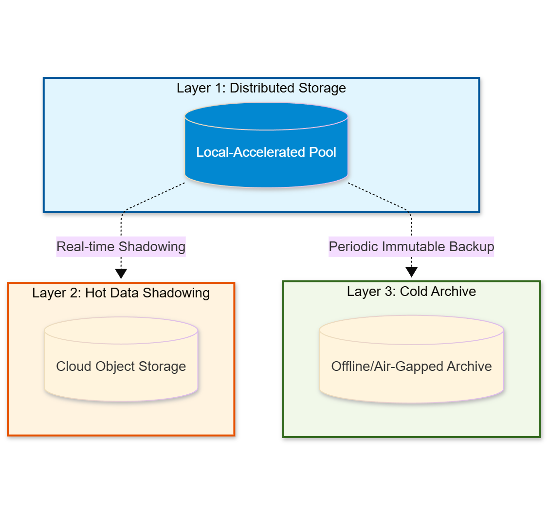 - Local Distributed Storage: For high-performance, daily operations.
