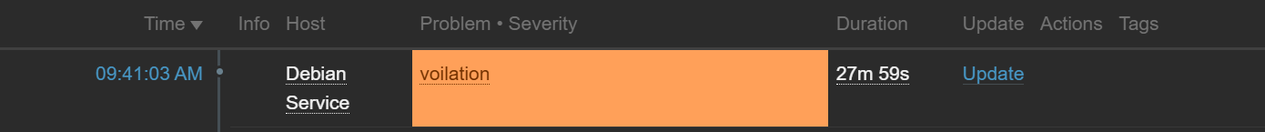 The “Security Policy” is defined within the Zabbix Trigger Engine. We have configured a specific threshold: If a tenant violates permission requirements more than 3 times within a rolling hour, the state changes to “Problem.” This converts raw log data into an urgent operational event.