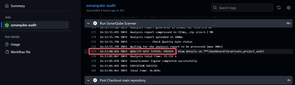 Every commit triggers automated static analysis with a focus on security posture. SonarQube evaluates Security Hotspots, including unsafe cryptography, improper input handling, and overly permissive APIs. These weaknesses often enable privilege escalation when a compromised dependency exists.